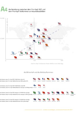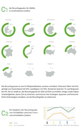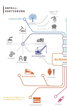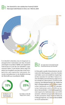 Im diesem Buch, das aus drei Kapiteln besteht, geht es um den Umweltschutz – um Reduzierung, Wiederverwertung und Recycling. Im ersten Kapitel wird der Anteil der Abfallemissionen von China und den wichtigsten Industrieländern der Welt dargestellt. Das zweite Kapitel beschreibt die Wandlungen der Emissionen von Hausmüll und chemischen Abfällen von 1985 bis 2004 in einigen Städten Chinas. Das dritte Kapitel zeigt einen Vergleich der Abfallrecyclingraten zwischen China und den wichtigsten Industrieländern der Welt. Nach der Untersuchung habe ich die Informationen visualisiert. Ziel ist es, auf einfache und leicht verständliche Art und Weise über die Gefahren der Abfallverschmutzung und die Vorteile des Abfallrecyclings zu informieren.