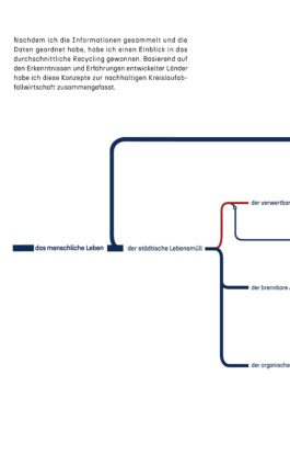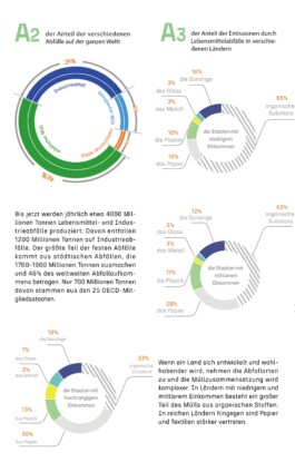 Im diesem Buch, das aus drei Kapiteln besteht, geht es um den Umweltschutz– um Reduzierung, Wiederverwertung und Recycling. Im ersten Kapitel wird der Anteil der Abfallemissionen von China und den wichtigsten Industrieländern der Welt dargestellt. Das zweite Kapitel beschreibt die Wandlungen der Emissionen von Hausmüll und chemischen Abfällen von 1985 bis 2004 in einigen Städten Chinas. Das dritte Kapitel zeigt einen Vergleich der Abfallrecyclingraten zwischen China und den wichtigsten Industrieländern der Welt. Nach der Untersuchung habe ich die Informationen visualisiert. Ziel ist es, auf einfache und leicht verständliche Art und Weise über die Gefahren der Abfallverschmutzung und die Vorteile des Abfallrecyclings zu informieren.