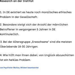 • auch männliche Opfer von der Vergewaltigung und sexueller Nötigung sollen Mitgefühl und Aufmerksamkeit von der Gesellschaft erhalten.