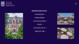 Dieses hundertjährige Luxushotel wird mit Minimalismus, Modernität und Eleganz positioniert. Die Wahl der Schriften unterstreicht den Beginn einer neuen Ära Schlosshotel Rettershof. Es wurde ein moderner Serifenschrift verwendet, der Entwurf der Serife entspricht der Form der Flagge des Hotels, was allgemein einen zeitgemäßen Luxus- und würdevollen Look transportiert. Im Fließtext steht die Lesbarkeit inklusive schnelles lesen im Zentrum. Die Farbe kommt einfach aus dem Wappenstempel vom „Haus von Dieskau” — 1886-1903 Rettershof im Besitz von Alice von Dieskau, geb. Rodewald (1854-1923), ihres Ehemann Leopold Freiherr von Vincke (1841-1909).